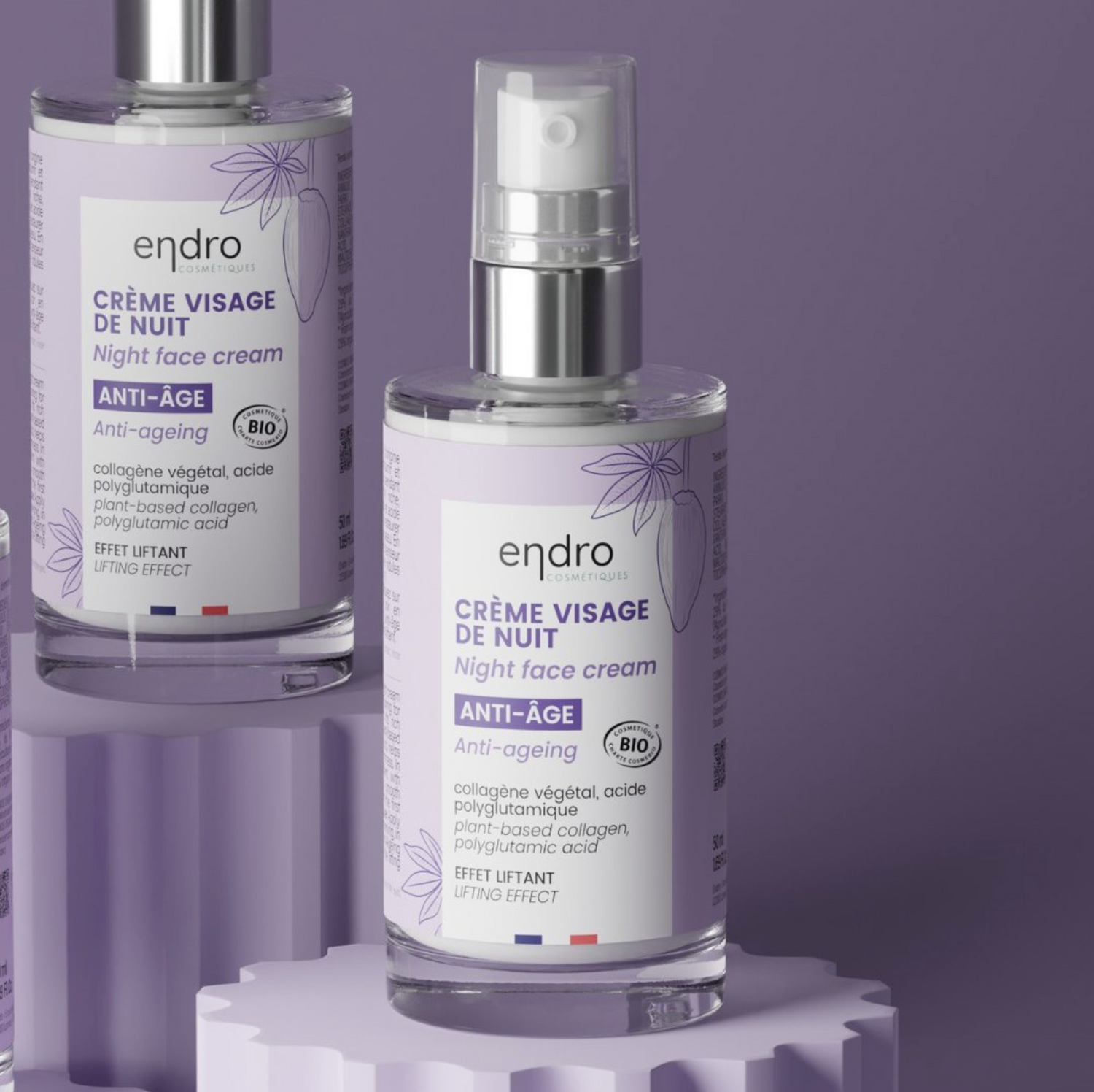 Plant-based collagen, a key ingredient in this cream, is essential for maintaining skin elasticity and firmness, fighting the signs of aging for a more youthful and radiant appearance. It is made from hydrolyzed rice protein and micro-fermentation of sugar cane and beetroot. Endro Night Cream is also enriched with polyglutamic acid, a molecule known for its ability to retain moisture.