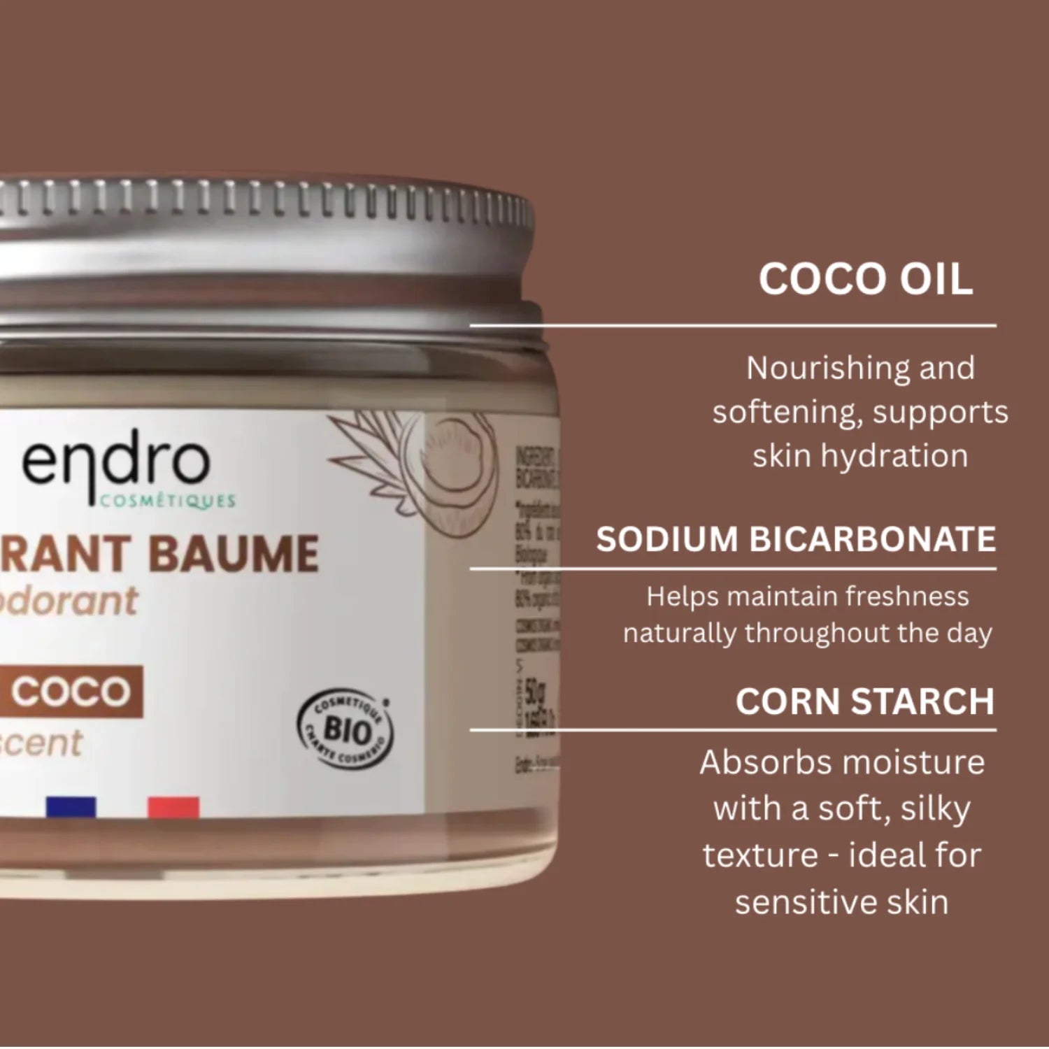 Discover this natural deodorant balm with a fresh coconut scent. Its gentle formula respects the skin and is free from essential oils, making it suitable for daily use. It is Organic, Vegan, Aluminum-Free, and comes in an Eco-Friendly Container.
