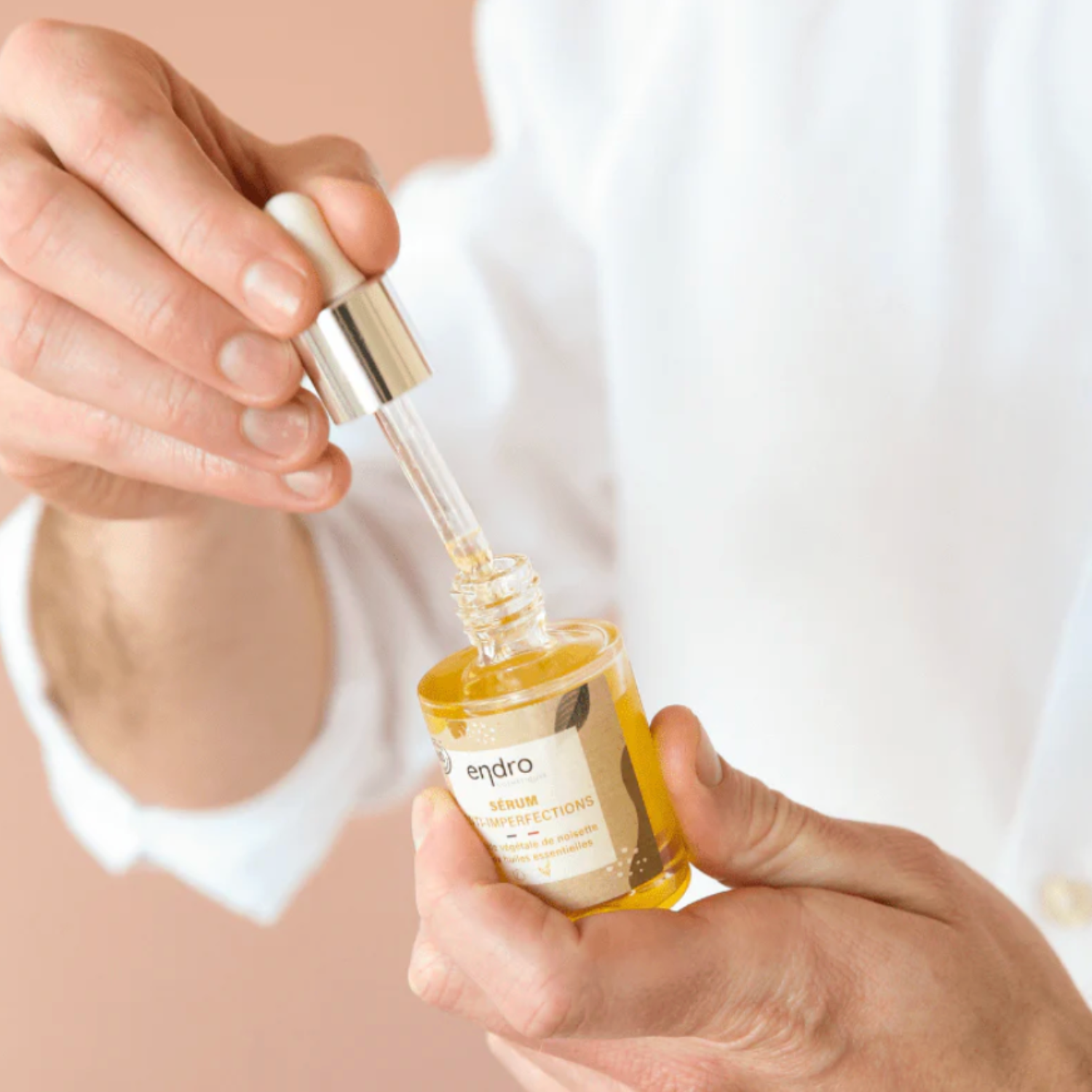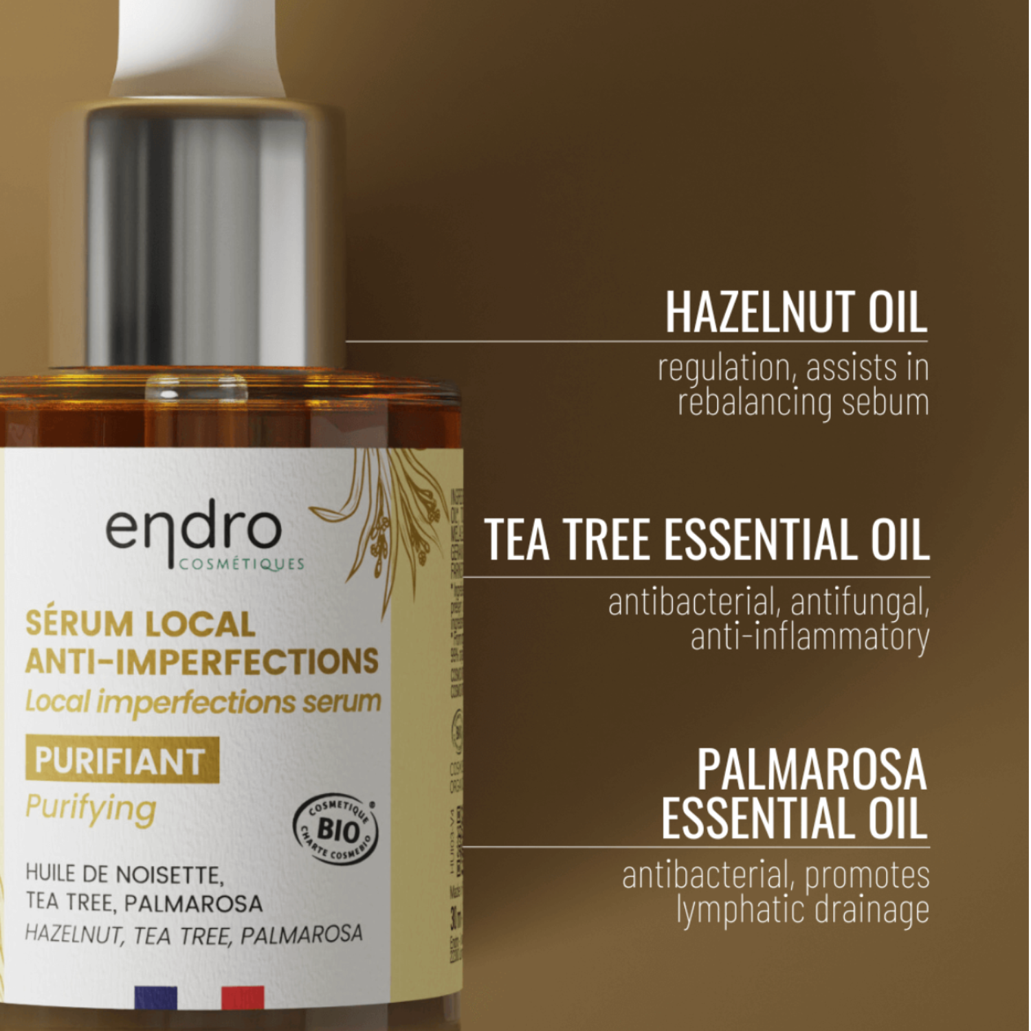 Key ingredients : Hazelnut oil (balancing), tea tree and palmarosa essential oils (purifying)